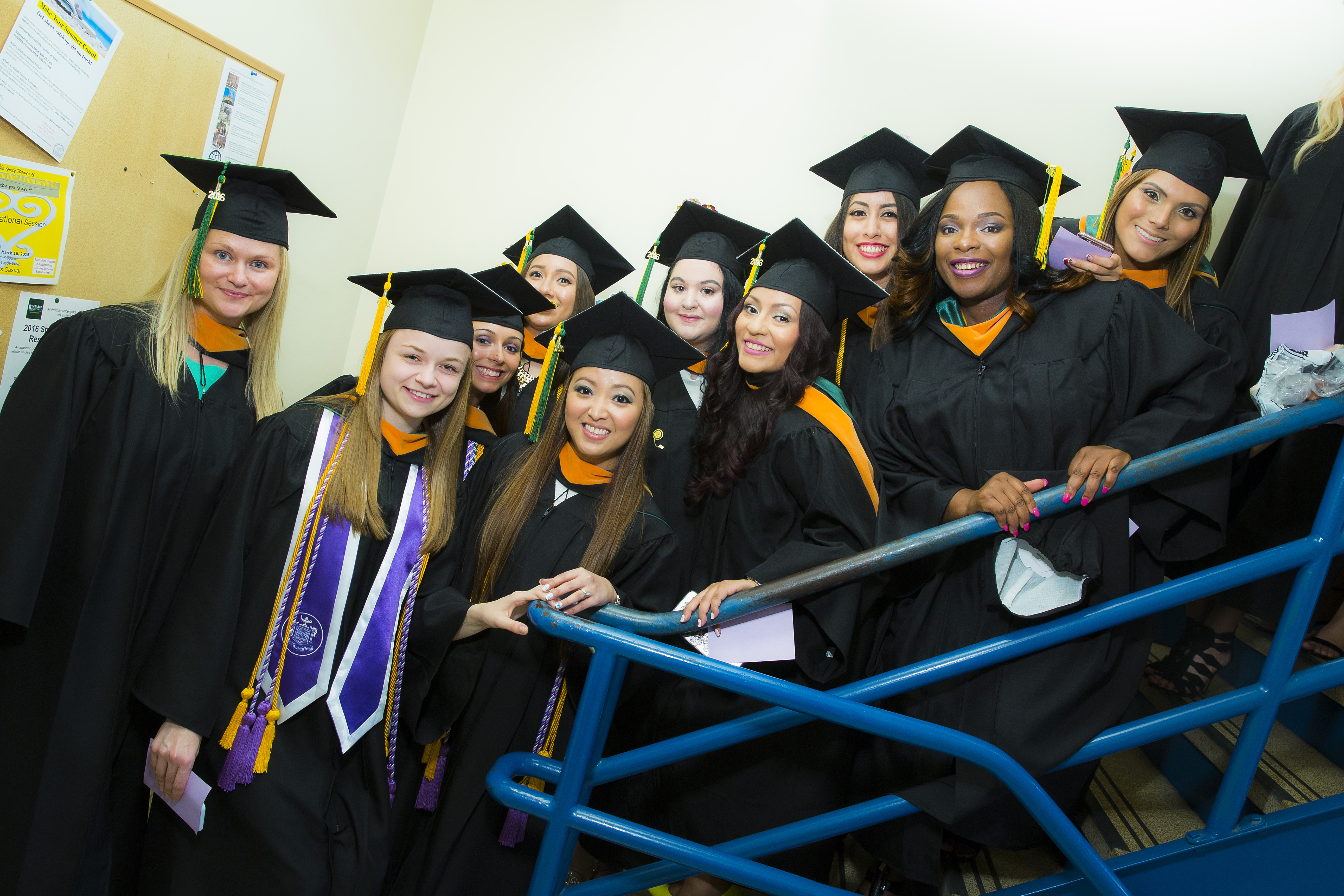 Felician graduates show their excitement as they prepare to process in to Pomp and Circumstance at the 2016 Felician University Commencement exercise.