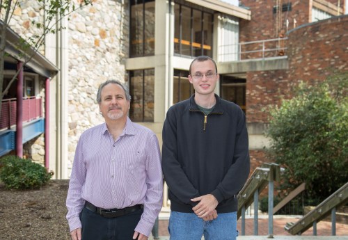 Engineering and technology professor Michael Qaissaunee (left) stands with Michael Giacona on Brookdale’s Lincroft campus. Photo by Brookdale Community College.