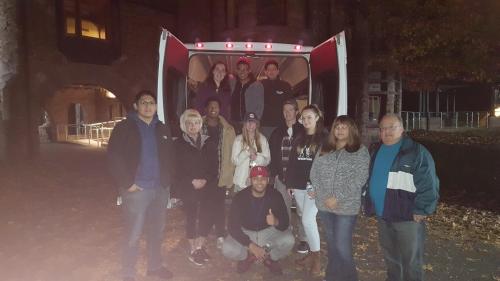Members of the Felician community pause to take a photo before they travel to New York City to feed the homeless and offer a kind word and a smile.