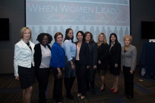 Women Leaders: Judy Spires, Abena Antwi, Maria Bordas, Sanyya Gardez, Sheridan Balmeo, New Jersey Assemblywoman Annette Quijano, Lora Condon, Ana Montero and Ada Morell shared their experiences of empowerment in the workforce at the When Women Lead panel discussion and networking event at Kean University.