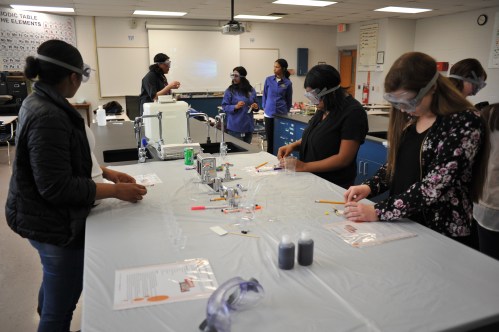 Ninth- and tenth-grade women from Gloucester County public and private school districts visited the Rowan College at Gloucester County (RCGC) campus on March 13 to explore opportunities in science, technology, engineering and mathematics (STEM) — careers predominately filled by males. The young women, accompanied by their teachers and counselors, had the opportunity to participate in three of the 13 hands-on workshops offered. RCGC’s Women in STEM Fair brings professional female mentors onto the campus to share their history, knowledge and experiences.