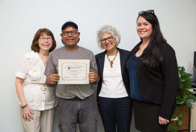 Patricia Tierney (l-r), Jose Escobar, Linda Roma, and Erin Marie Tierney stand together at Brookdale Community College’s ESL recognition ceremony in Hazlet.