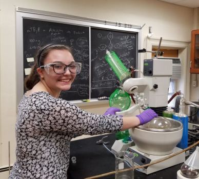 I learned techniques, including purifying crude reaction mixtures and using syringes to add air sensitive reagents to my reaction mixtures. I learned how to perform the aqueous workup required for my research and work under certain conditions like an inert argon atmosphere. I gained experience using different analysis techniques like Thin Layer Chromatography (TLC) and proton Nuclear Magnetic Resonance (NMR). Traditional organic chemistry lab classes do not always offer enough exposure on running these tests, which is why this program was so beneficial. I became familiar with performing the prep work necessary for taking a TLC analysis and I also used the software required for the NMR machine. My mentor provided me with insight and guidance throughout the process. This program showed me how to manage and oversee my reactions using these analyses. Additionally, presenting my findings helped me improve my presentation skills.