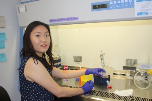 When then-freshman Soojin Kim ’20 approached Alice Eun Lee, an associate professor of biomedical engineering, about working in her lab, the outcome was far from certain. “She asked me if I had research experience. I didn’t. She then looked at my course load and asked me if I had the dedication to come to the lab on a regular basis. And that, I could promise.” For the past several months, Kim has been helping Lee’s research team develop a bioscaffold derived from the extracellular matrix – the structural molecules that support cells – of the pancreas, to serve as a niche to culture insulin-producing pancreatic stem cells. Diabetes attacks the pancreas, and so the researchers’ goal is to create a structure that will attract and nurture healthy cells. “We hope they’ll proliferate,” says Kim, who spent much of the summer stripping cells from their matrix and observing interactions between live cells and biomaterials. Her first research hurdle was creating a hydrogel containing the structural molecules. “It just wouldn’t gel at all and that was a critical part of the experiment. I tried over and over. I actually dreamed about the experiment one night and within 24 hours, it had gelled!” says Kim, who spent eight hours a day in the lab over the summer. Encouraged by her strides, she’s now applying for another research grant to continue her work. Of her future, she notes, “I want to be a doctor who collaborates in research. I do love gathering data.”