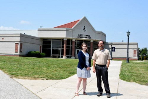 RCGC alumna Sarah Leinenbach with STEM Dean Brenden Rickards.