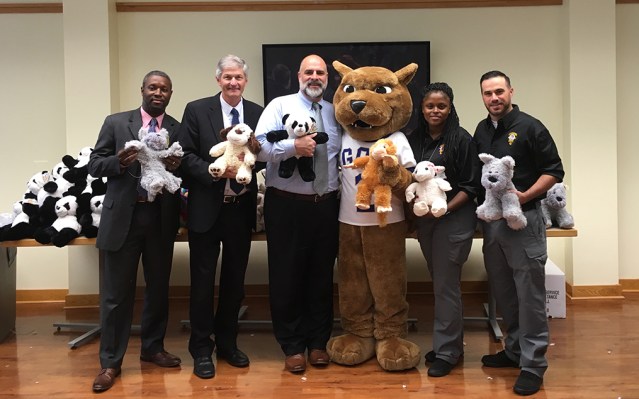 As part of Domestic Violence Awareness Month, Georgian Court University, in partnership with the Lakewood Police Department, came together to stuff 190 toy animals for Teddy Bears for Tykes, a service project to help reduce trauma suffered by children exposed to violence, abuse, and other traumatic incidents.