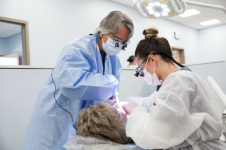 Rowan College at Burlington County dental hygiene faculty member Faith Zimnes, the 2017 Mary Jane Kellogg Dutton Faculty Mentorship Award recipient, works with senior RCBC dental hygiene student Jessica Scanlon in RCBC’s new dental hygiene clinic at the Mount Laurel Campus. RCBC’s dental hygiene program continues to provide low-cost preventative oral health services to the community.