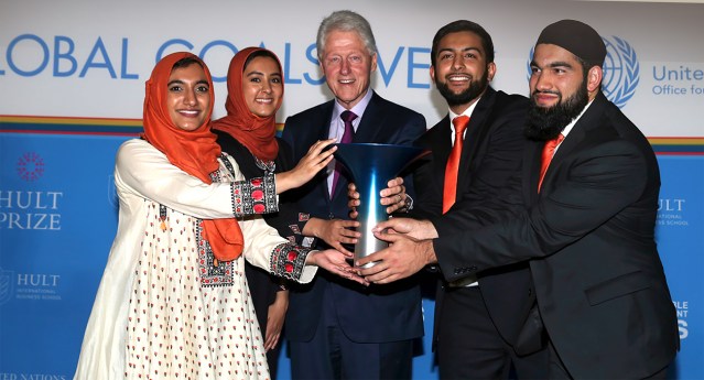 The winners posing with former President Bill Clinton and the Hult Prize Photo credit: Hult Prize