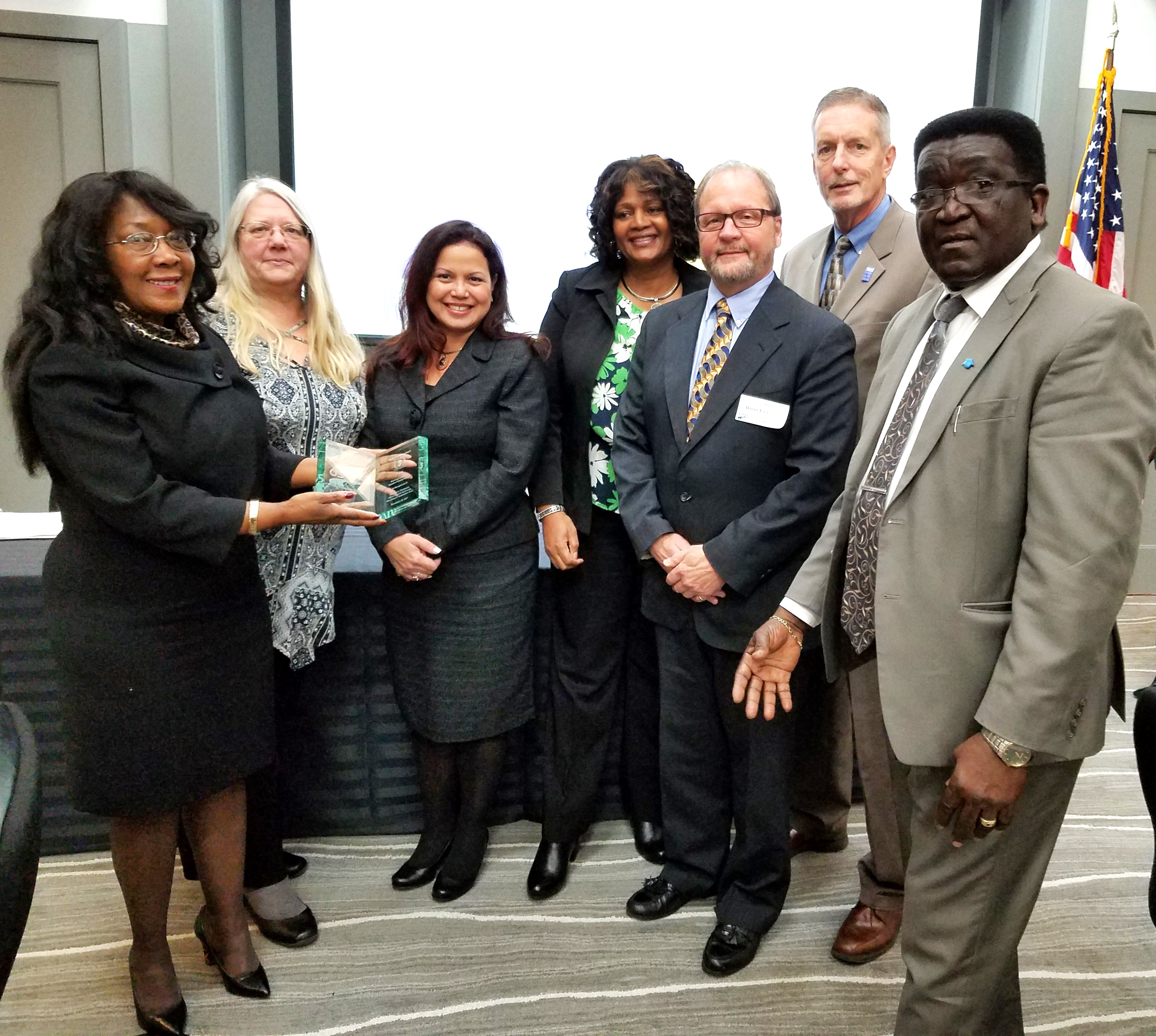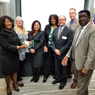 Secretary Hendricks and the Gateway to College – Camden County College, from left: Faith Grant; Marilyn Martinez; Margo Venable; David Edwards; Don Borden; and Dr. Irvin Sweeney