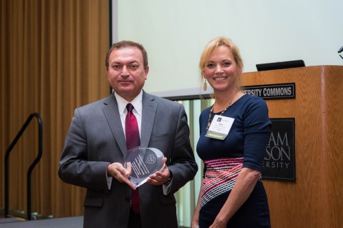 Siamack Shojai, dean, William Paterson University’s Cotsakos College of Business, accepts award from Diane DeOliveira, CFP, president, Financial Planning Association of New Jersey